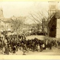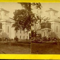 Interior of Unitarian Church, decorated for Hiram Lodge Centennial, 1897
