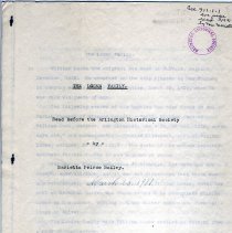 The Stores in Arlington 1812 paper read by Geo Wellington, 1901 5 handwritten pp 2 copies