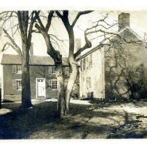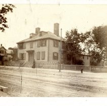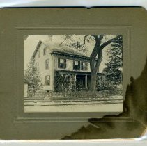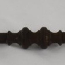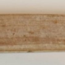 Lathe, wood, handmade, taken from Cutler-Tufts-Russell Tavern, Mass. Ave. Building removed 1907 One side stained or painted white. One nail hole. One end finished with mitered edge, one end broken.