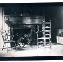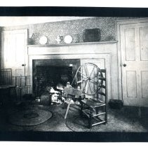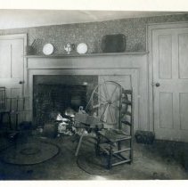 Elijah Cutter house, Parlor, two chairs, fireplace, spinning wheel