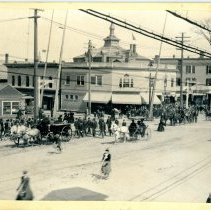 Masonic Hiram Lodge, decorated for centennial, 1897