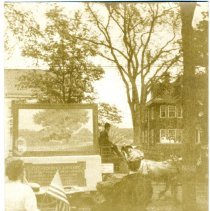 Interior of Town Hall, south end, decorated for Hiram Lodge Centennial